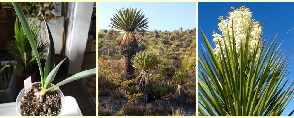 faxoniana. Yucca carnerosana má však listy které
